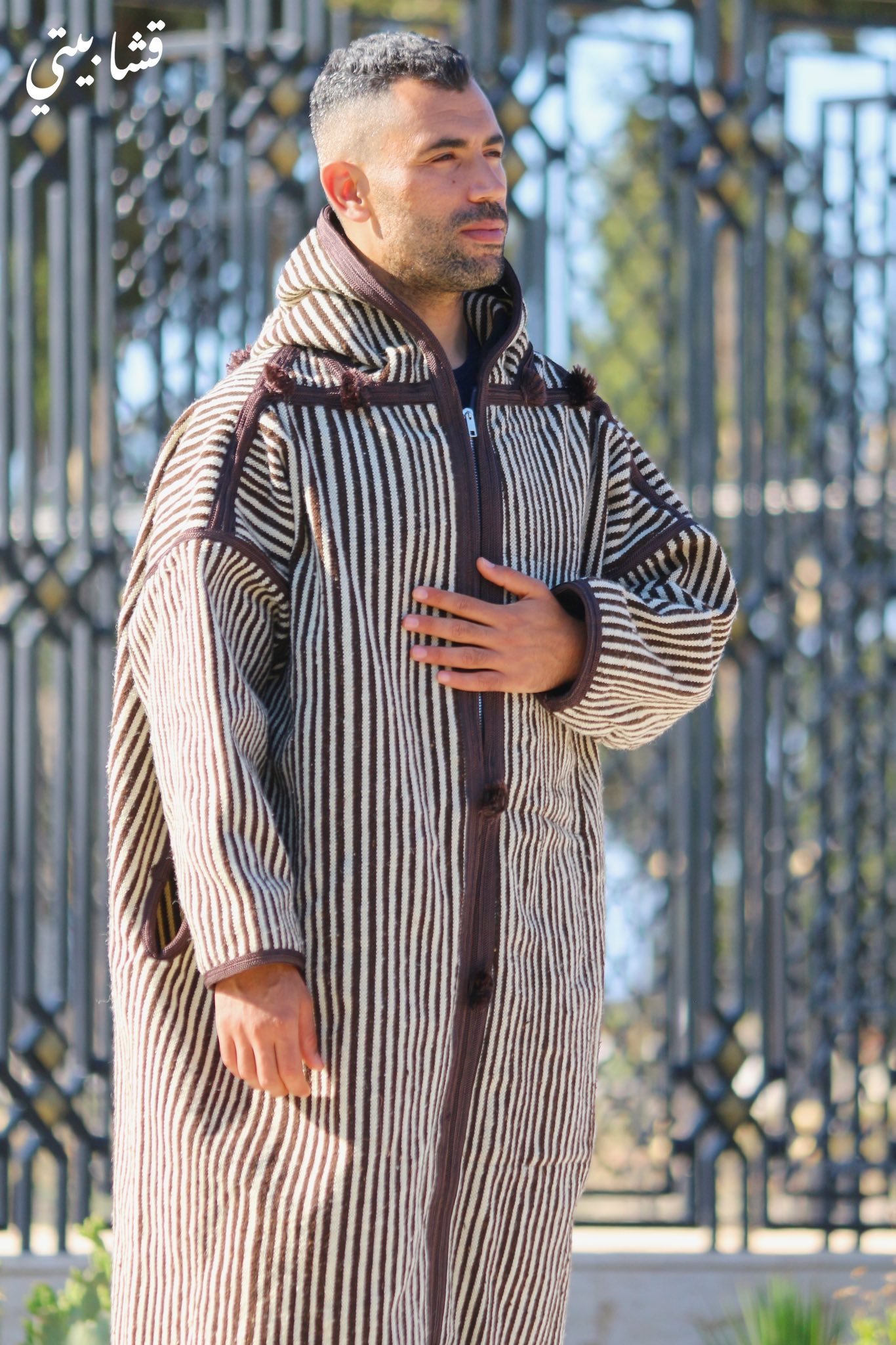 قشّابية زمّنية مصنوعة من صوف طبيعي غير مصبوغ، كل قطعة مصنوعة يدويًا بعناية لتعكس الحرفية التونسية الأصيلة. خامة طبيعية عالية الجودة توفر دفء وراحة مثالية، وتخلي كل قشّابية فريدة ومميزة.